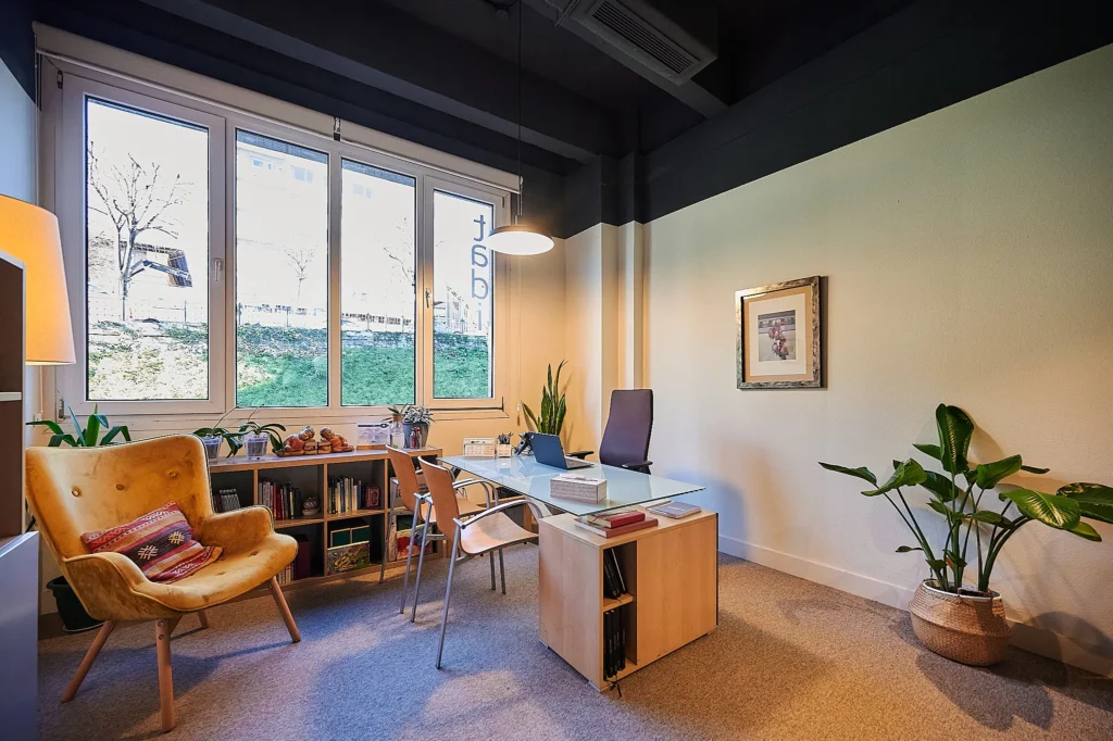 Un espacio en el centro de Bilbao (Bizkaia), en la calle Uribitarte 22, con espacios cómodos, amables y adecuados para encontrar un ambiente de calma y seguro en el que realizar procesos psicoterapéuticos.